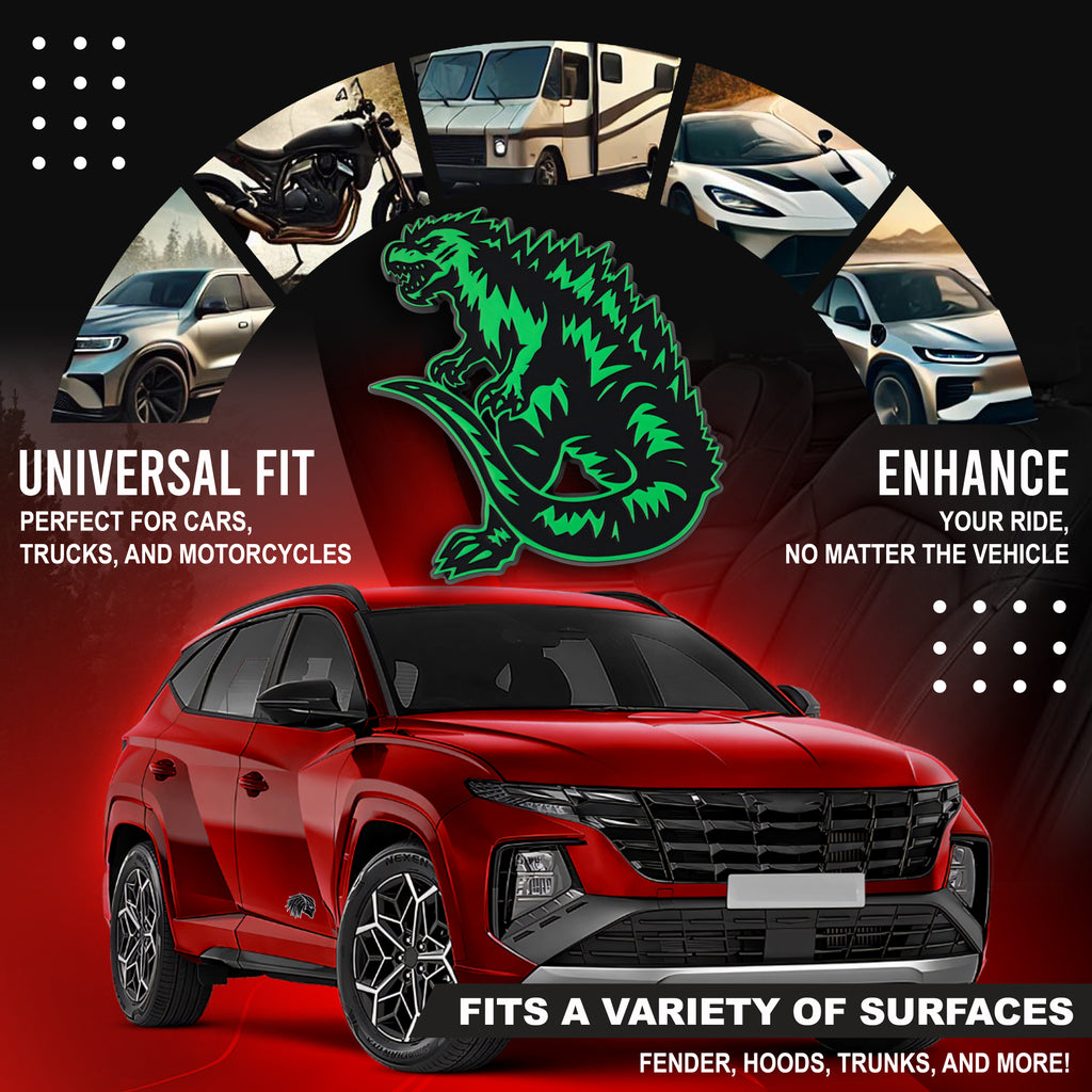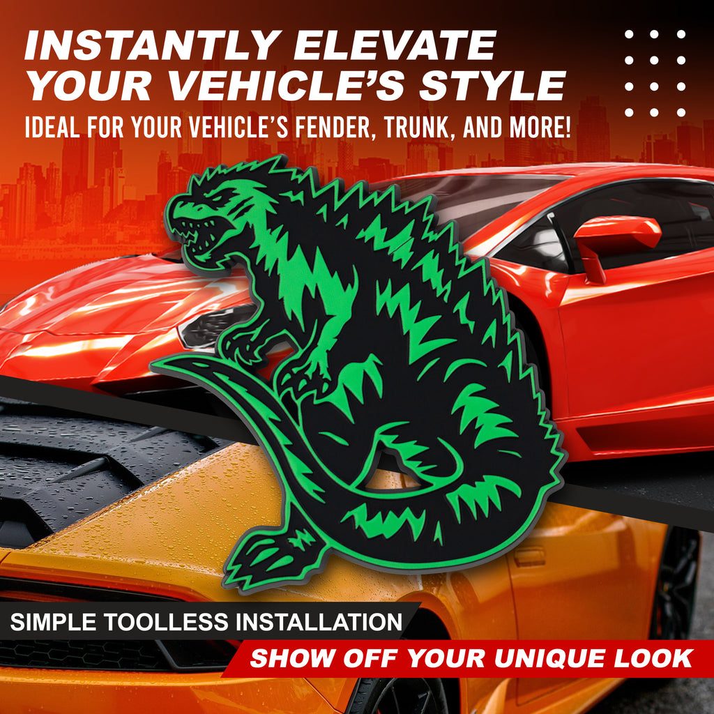 Whether mounted on your hood, trunk, fender, or tailgate, the Kaiju Dinosaur emblem adds a unique monster-inspired touch that sets your vehicle apart.